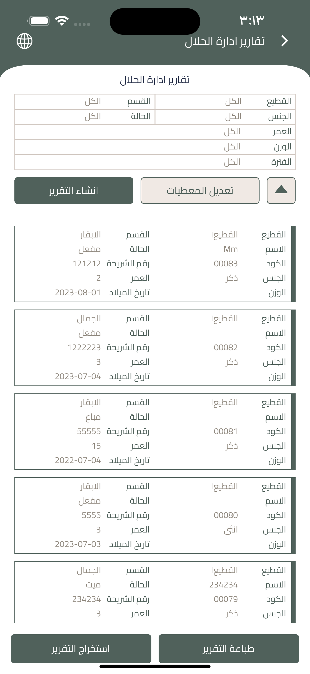 تعرض كل ما يتعلق بالحيوانات الموجودة في المزارع بانواعها مع اعدادات مفصلة للتقارير