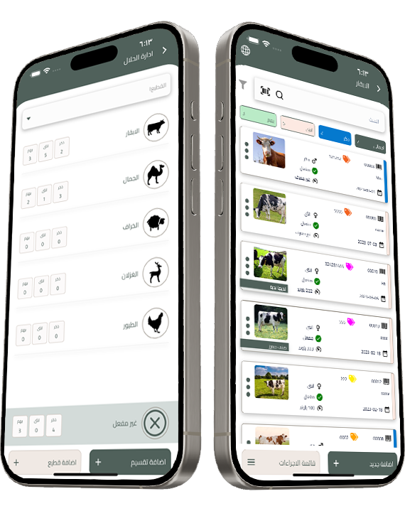 - متابعة الحيوانات بشكل دوري من حيث تسجيل الاوزان وجرعات العلاج مع امكانية النقل بين اقسام القطعان.